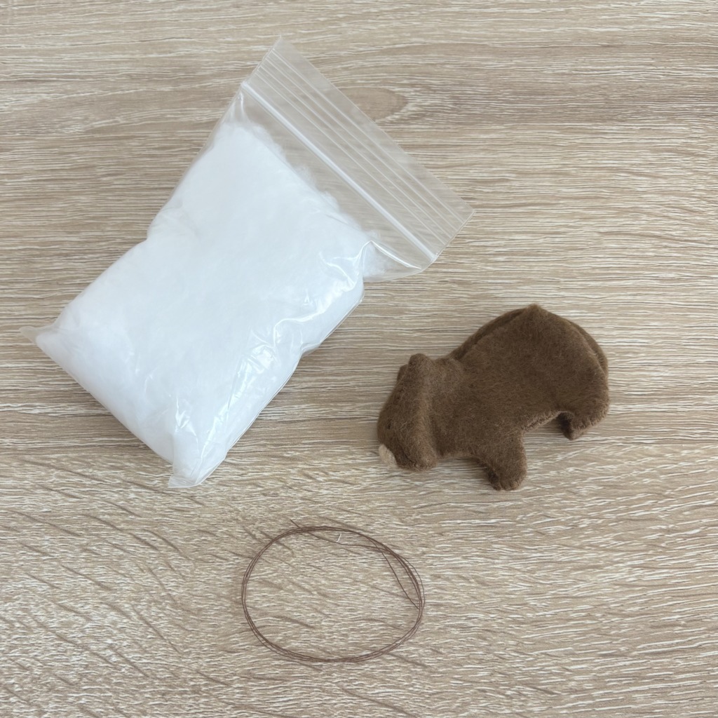フェルト素材の、途中まで縫製済みのぬいぐるみキットです。