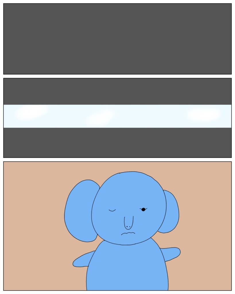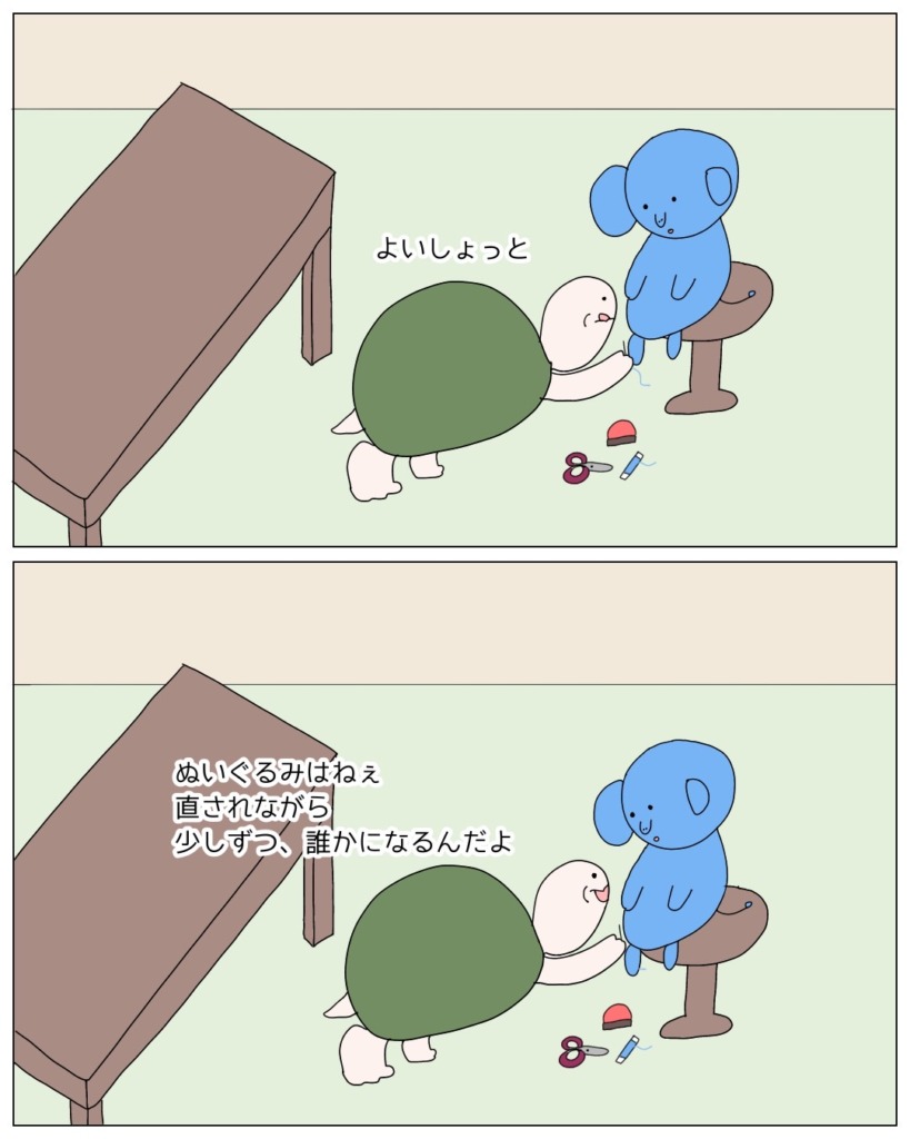 ぞうのぬいぐるみが、自分は何者で、どこに行くべきかを